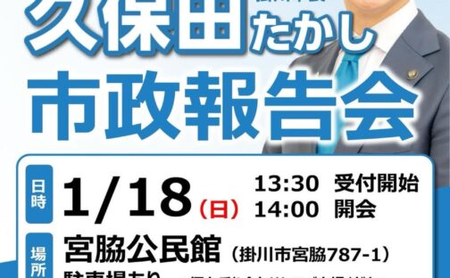 後援会からのお知らせです。皆様とお会いできますことを楽しみにしております!【市政報告会のご案内】新春の候、皆さまにお…