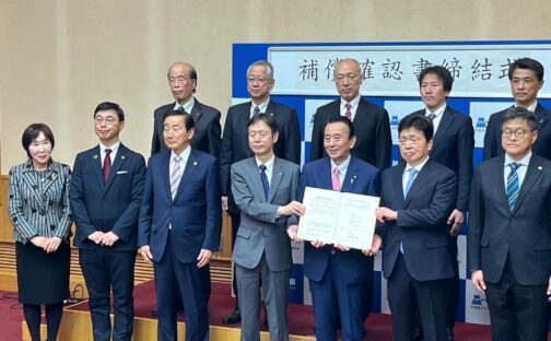リニア水資源補償確認書の締結式に出席しましたリニア工事に伴う水利用への影響が生じた場合の対応について、静岡県とJR東海…